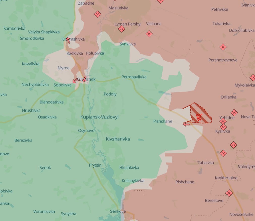 В Купянске ситуация изменилась в пользу Украины. Как сообщил начальник управления коммуникации Группировки Объединенных Сил Виктор Трегубов, по перехватам, оккупантов в городе чуть менее 50 человек. Они фактически отрезаны друг от друга и своих основных сил, ведь логистика очень эффективно нарушена.