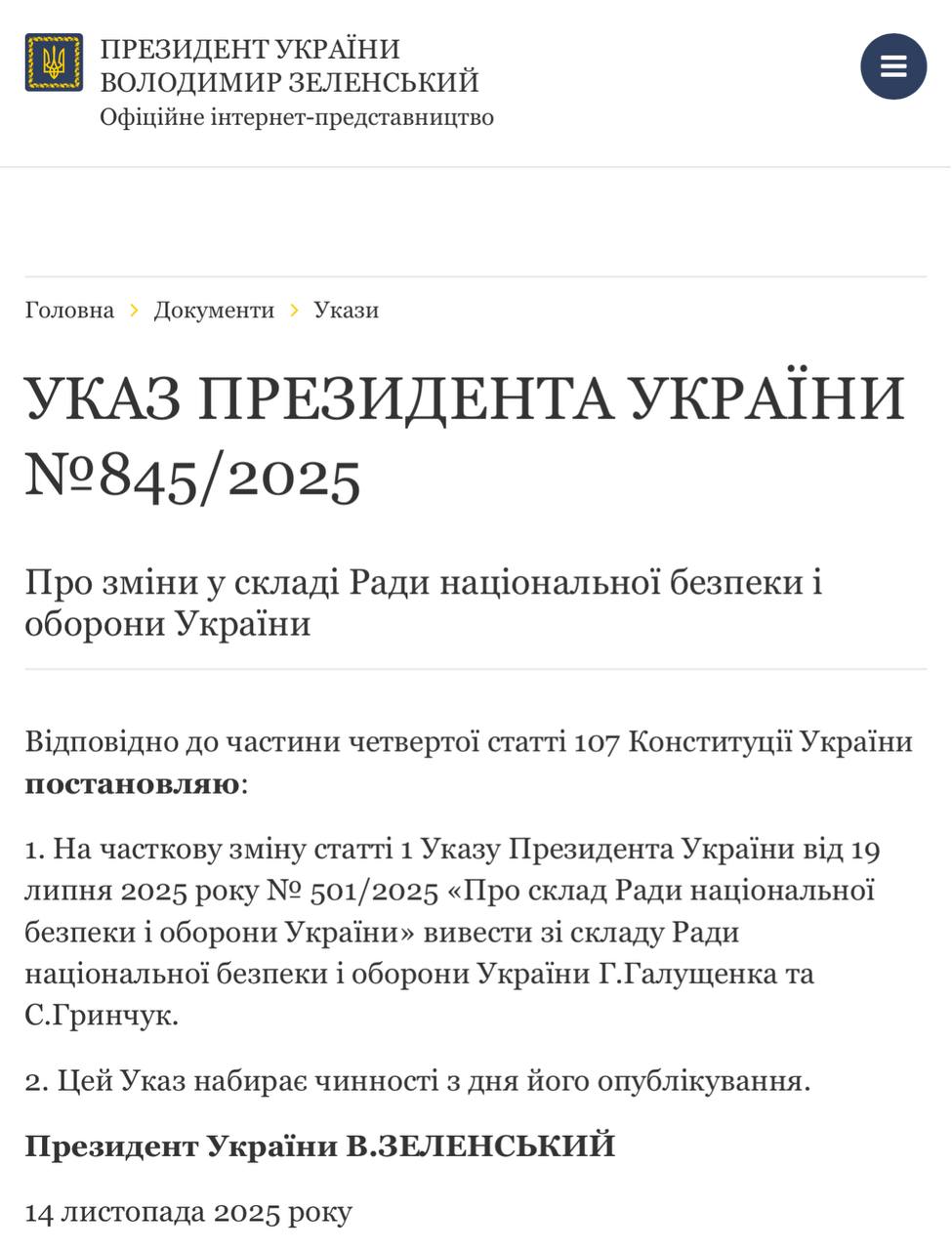 Зеленский вывел из состава СНБО министра энергетики Светлану Гринчук и министра юстиции Германа Галущенко, фигурирующих на "пленках НАБУ".