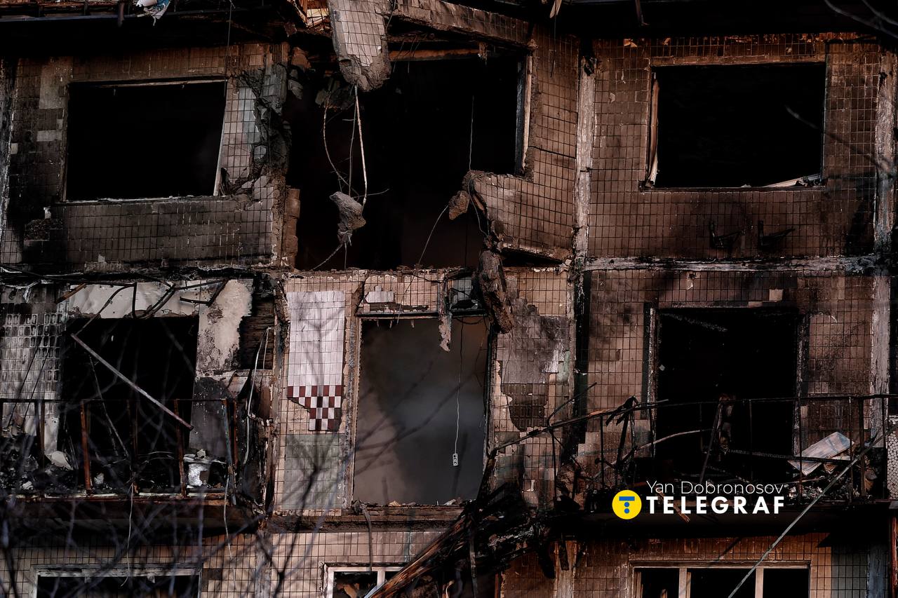 На месте работал фотокорреспондент "Телеграфа" Ян Доброносов. На его фото видно, что жилой дом получил значительные повреждения – разрушенна часть наружных стен. Удар пришелся в середину дома, но задел с первого до последнего этажа.